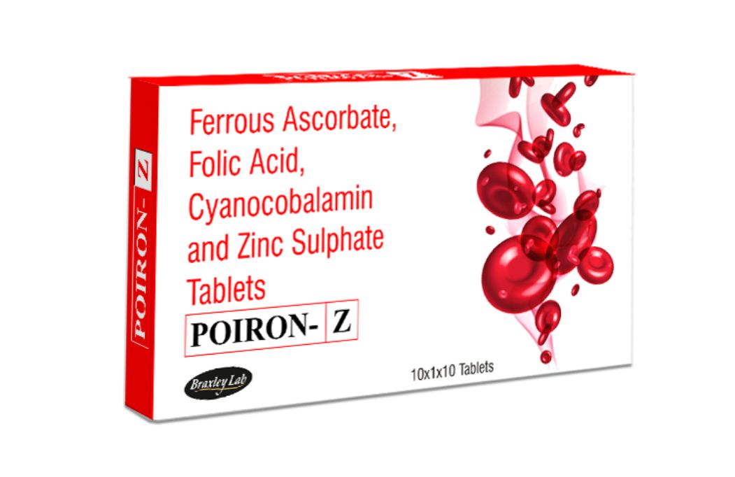 Ferrous Ascorbate - 100mg + Folic Acid - 1.5 mg + Cynaocobalamine - 15 mcg + Zinc Sulphate - 22.5 mg